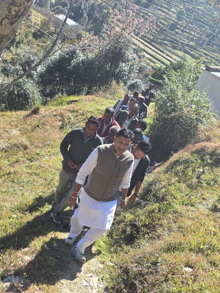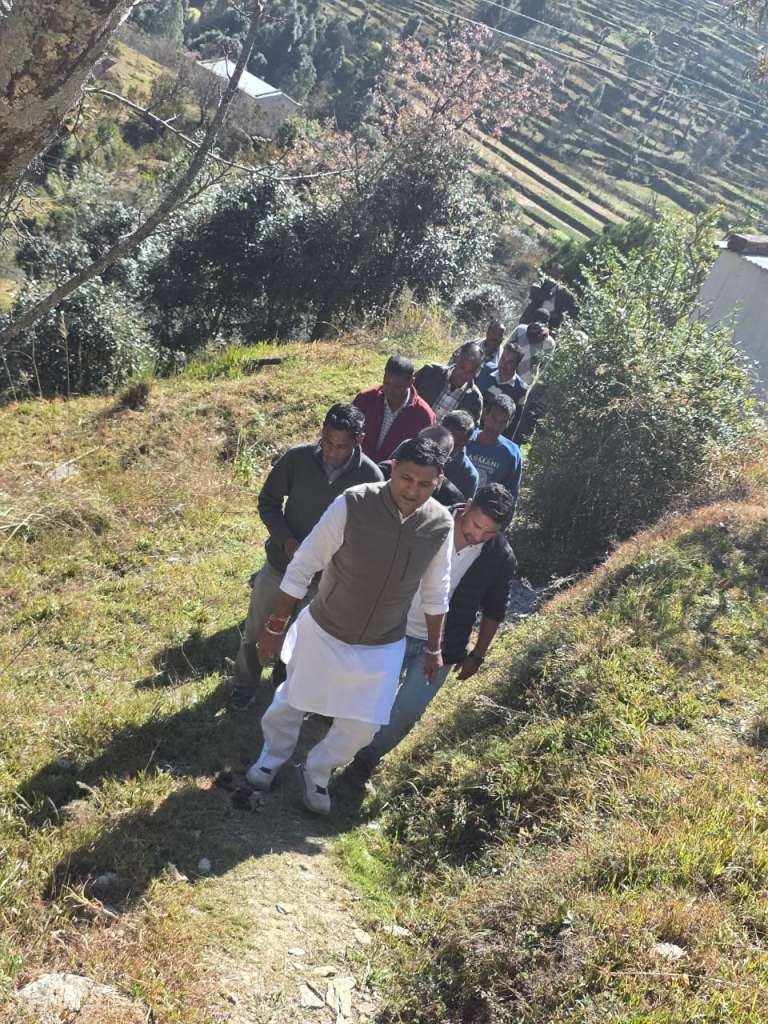 भीमताल विधायक राम सिंह कैड़ा ने आज भीमताल विधानसभा क्षेत्र के धारी ब्लॉक के सुपी, काफली, कसियालेख, लेटिबुगा आदि गांव का दौरा कर ग्रामीणों की समस्याओं को सुना! ग्रामीणों ने बिजली, पानी , सड़क आदि समस्याओं को विधायक कैड़ा के सम्मुख रखा । विधायक कैड़ा ने संबधित विभाग के अधिकारियो को फोन कर ग्रामीणों की समस्याओं का समाधान करने के निर्देश दिए। विधायक ने जल निगम व जल संस्थान के अधिकारियों को जल जीवन मिशन योजना के अंतर्गत चल रहे पेयजल लाईनों का निर्माण कार्य गुणवत्ता के साथ शीघ्र पूर्ण करने के निर्देश दिये! Pwd व pmgsy विभाग के अधिकारियो को फोन कर कहा विधायक ने pwd व pmgsy विभाग के अधिकारियो क्षतिग्रस्त मोटर मार्गो को शीघ्र सही करने को कहा है। विधायक कैड़ा ने कहा सरकार की योजनाओं को गाँव के अंतिम छोर पर खडे व्यक्ति तक पहुँचे इस दिशा मै लगातार कार्य किया जा रहा!आम जनता तक पहुंचकर जनता को सरकार की योजनाओं का लाभ देने का कार्य किया जा रहा है!