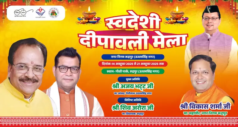 रूद्रपुर। नगर निगम द्वारा पहली बार गांधी पार्क में आयोजित स्वदेशी दीपावली मेला अब पूरे यौवन पर है। 14 अक्टूबर से शुरू हुआ यह मेला 21 अक्टूबर तक चलेगा, जिसमें हर दिन सांस्कृतिक प्रस्तुतियों और स्वदेशी उत्पादों की रौनक देखने को मिल रही है।आज मेला और भी खास हो जाएगा जब पूर्व केंद्रीय मंत्री व वर्तमान सांसद अजय भट्ट बतौर मुख्य अतिथि शाम को मेले में पधारेंगे। उनके साथ विधायक शिव अरोरा विशिष्ट अतिथि के रूप में मौजूद रहेंगे। इस आयोजन में स्थानीय नागरिकों के अलावा, विभिन्न स्कूलों के छात्र-छात्राएं और क्षेत्रीय कलाकार भी भाग ले रहे हैं। मेले में रोजाना सांस्कृतिक मंच पर स्कूली बच्चों और स्थानीय कलाकारों द्वारा प्रस्तुत किए जा रहे नृत्य, गायन और पारंपरिक कार्यक्रम मेले की रौनक को और भी बढ़ा रहे हैं। हर दिन दर्शकों की भारी भीड़ उमड़ रही है, जिससे आयोजकों का उत्साह भी चरम पर है। नगर निगम की ओर से मेले के सफल आयोजन की जिम्मेदारी संभाल रहे महापौर विकास शर्मा ने शहरवासियों से अधिक से अधिक संख्या में मेले में पहुंचने की अपील की है। उनका कहना है कि यह मेला स्वदेशी उत्पादों को बढ़ावा देने और सांस्कृतिक समरसता का अद्भुत संगम है, जो रूद्रपुर की नई पहचान बनेगा।